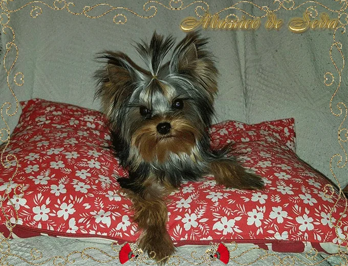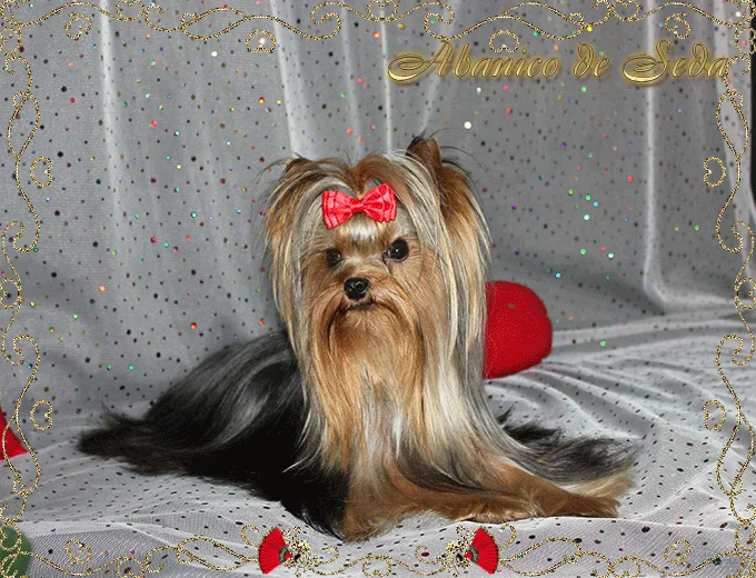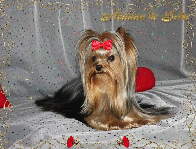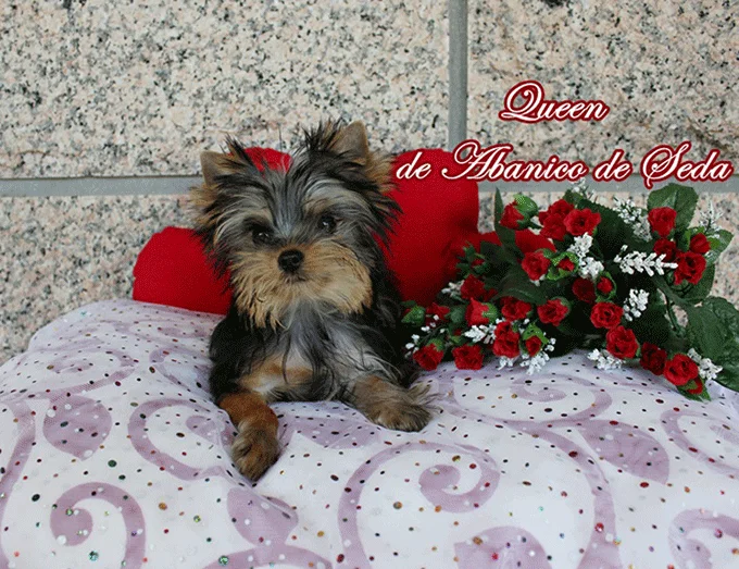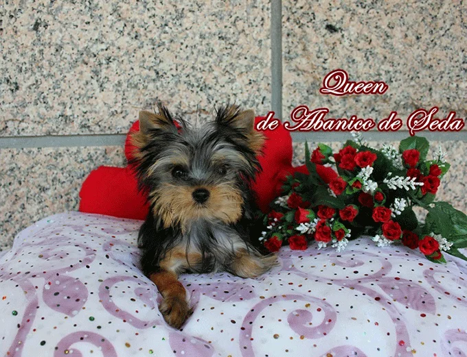 Queen es un machito precioso nacido en casa. Tiene un carácter fantástico y es súper alegre. Es un yorkshire que aúnque tiene un pequeño tamaño, tiene unas cualidades increíbles. Una textura y un color de pelo fantástico, una estructura espectacular que por supuesto heredó de sus padres y que decir de su expresión...